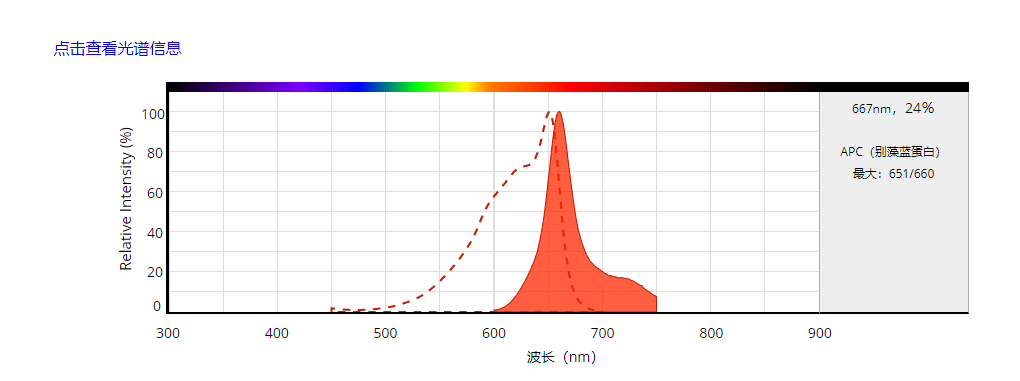別藻藍蛋白 APC是由藻膽蛋白提取出的一種熒光染料。藻膽蛋白由許多亞基組成,每個亞基具有蛋白質(zhì)骨架,線性四吡咯發(fā)色團與其共價結(jié)合。藻紅蛋白(紅色)和藻藍蛋白(藍色)是兩種主要的藻膽蛋白。藻紅蛋白(PE)的吸收最大值介于490和570nm之間,而藻藍蛋白(PC)的吸收最大值介于610和665nm之間。通常,當作為硫酸銨沉淀物冷藏儲存時,藻膽蛋白具有良好的長期穩(wěn)定性。純化的膽脂蛋白可以在酸性或堿性條件下解離成亞基,但在室溫下在中性pH下相對穩(wěn)定,濃度大于0.1mg / mL。解離的亞基通常具有比天然色素更低的著色和熒光。建議將所有藻膽蛋白及其結(jié)合物(優(yōu)選在中性緩沖溶液中)冷藏,從不冷凍。