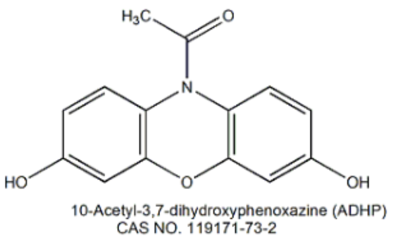 別    名 BES-H2O2-Ac; 10-Acetyl-3,7-dihydroxyphenoxazine; Ampliflu Red; 10-Acetyl-3,7-dihydroxyphenoxazine; 1-(3,7-dihydroxy-10H-phenoxazin-10-yl)-ethanone; H2O2 probe;